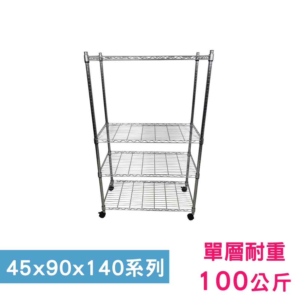 【我塑我形】90x45x140cm 鐵力士四層收納架+輪 台灣製 單層耐重100kg 移動式鍍鉻層架
