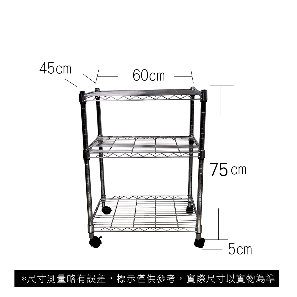 【我塑我形】60x45x80cm 鐵力士三層收納架+輪 台灣製 單層耐重100kg 移動式鍍鉻層架