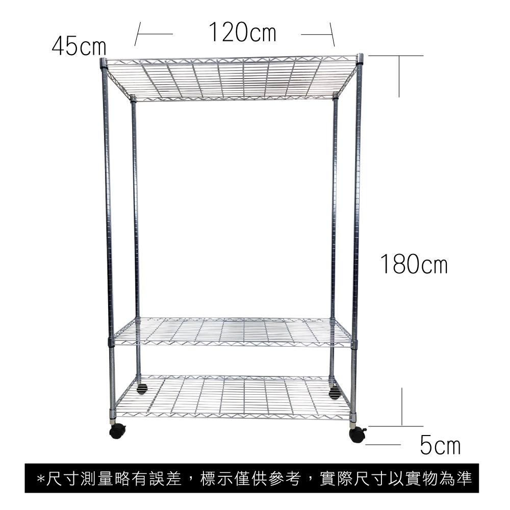 【我塑我形】120x45x185cm 鐵力士三層收納架+輪 台灣製 單層耐重100kg 移動式鍍鉻層架