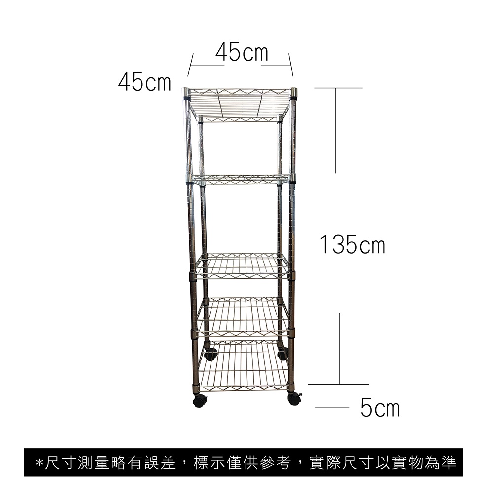 【我塑我形】45x45x135cm 鐵力士五層收納架 台灣製 單層耐重100kg 鍍鉻鐵架 層架