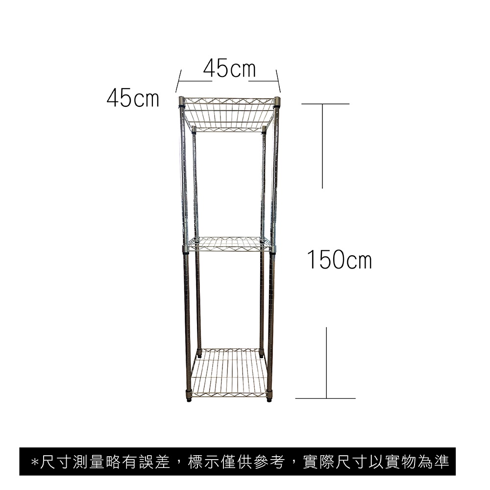 【我塑我形】45x45x150cm 鐵力士三層收納架 台灣製 單層耐重100kg 鍍鉻鐵架 層架