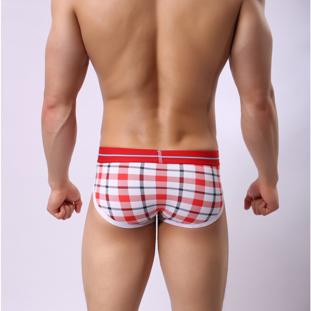 【我塑我形】純棉經典格子U凸三角男內褲 內褲 男內褲 格子 三角褲 純棉 棉內褲 三角 (紅色)