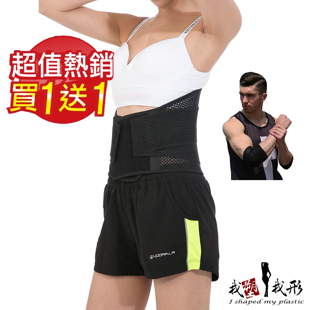 【我塑我形】透氣網格塑腹護腰帶 ㄧ件 (贈 可調式兩段式高彈力透氣運動護肘ㄧ只) 護腰帶 護腰 腰帶 護肘 運動