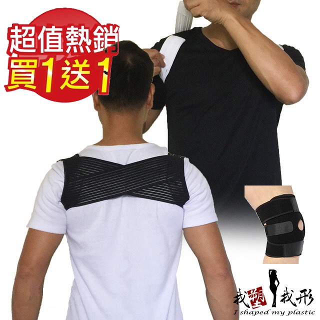 【我塑我形】可調式美姿透氣背帶 ㄧ件 (贈 可調式黏扣型彈簧透氣護膝一只) 透氣 護膝