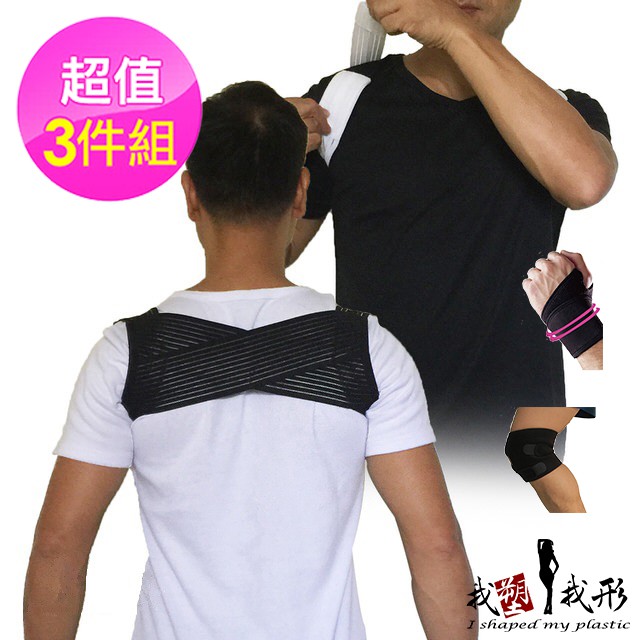 【我塑我形】可調式美姿透氣背帶 ㄧ件 (贈 可調式兩段高彈力透氣運動護膝ㄧ只 + 護腕ㄧ只) 透氣 背帶 護膝 護腕