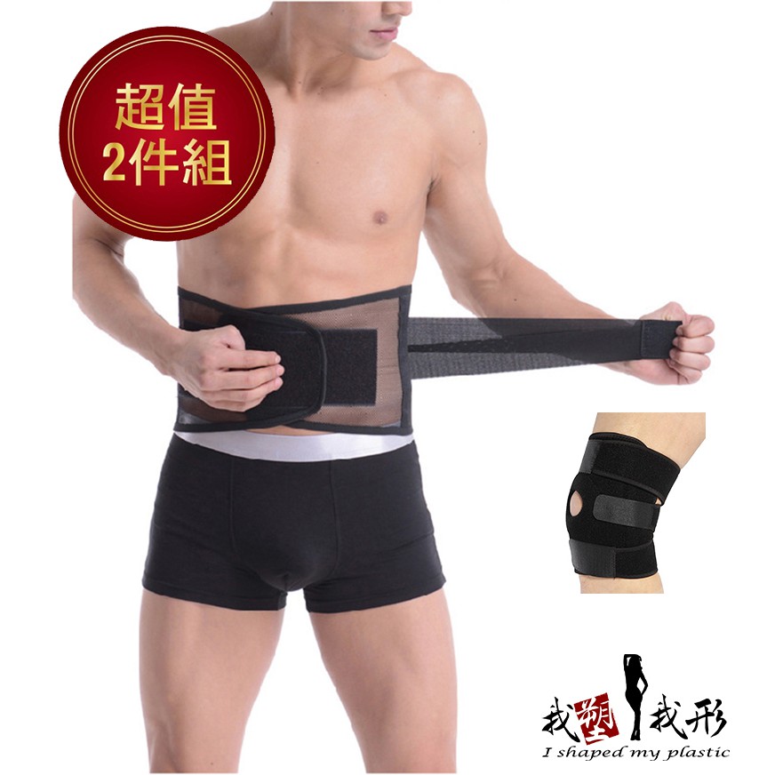 【我塑我形】高彈超透氣蜂巢氣網孔束腹緊緻護腰帶 一件 (贈 可調式黏扣型彈簧透氣護膝一只) 護腰帶 護腰 腰帶 護膝