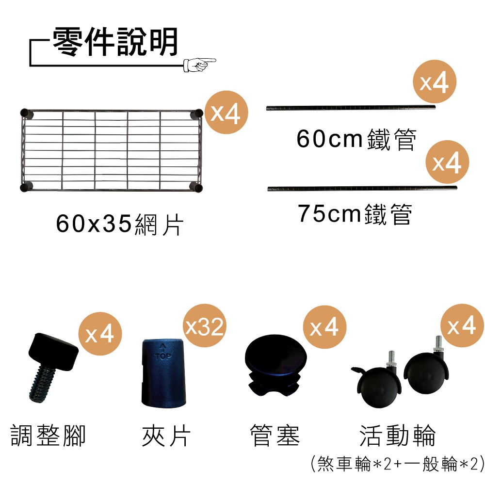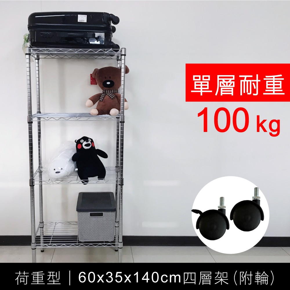 【我塑我形】60x35x140cm 鐵力士四層收納架+輪 台灣製 單層耐重100kg 移動式鍍鉻層架