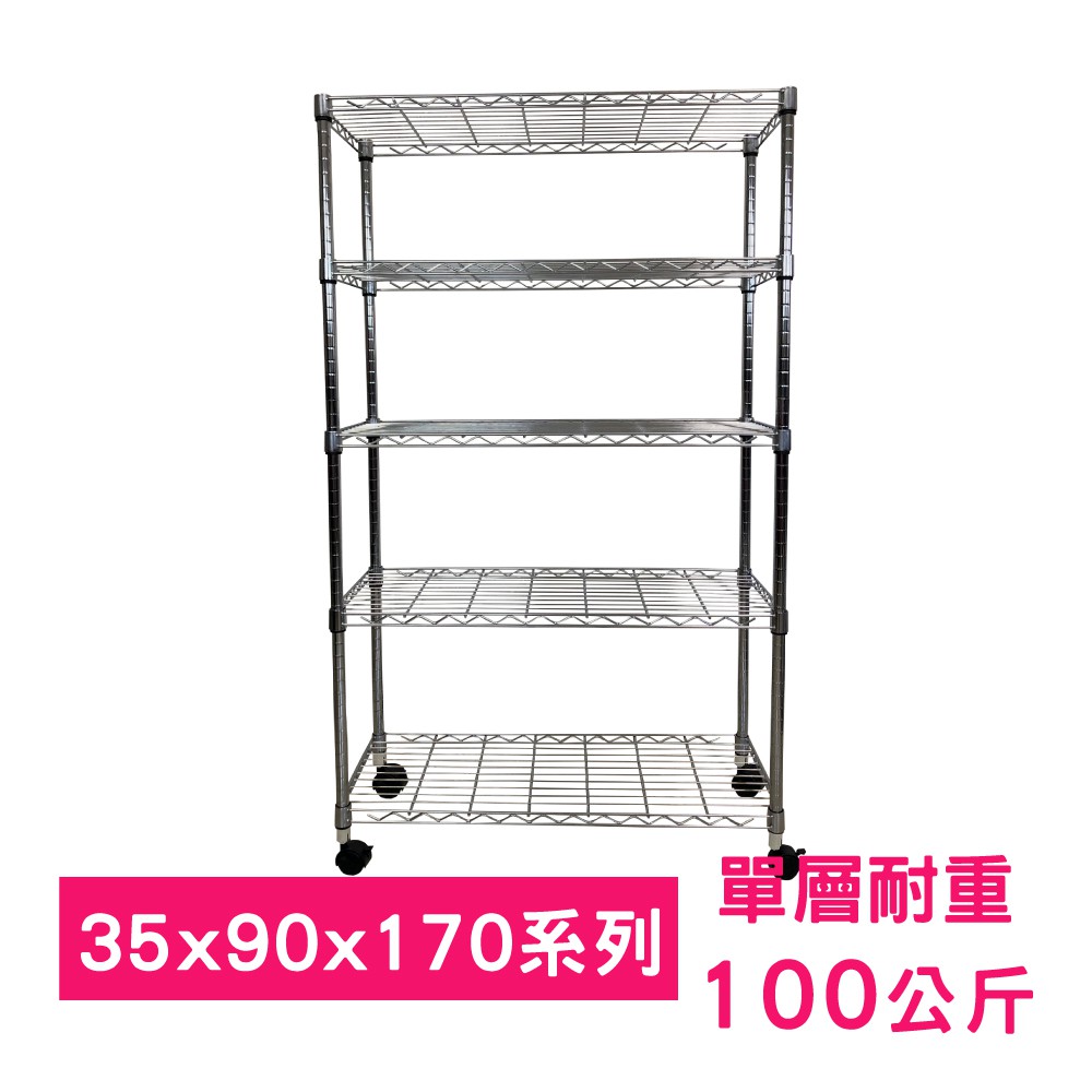 【我塑我形】90x35x170cm 鐵力士五層收納架+輪 台灣製 單層耐重100kg 移動式鍍鉻層架