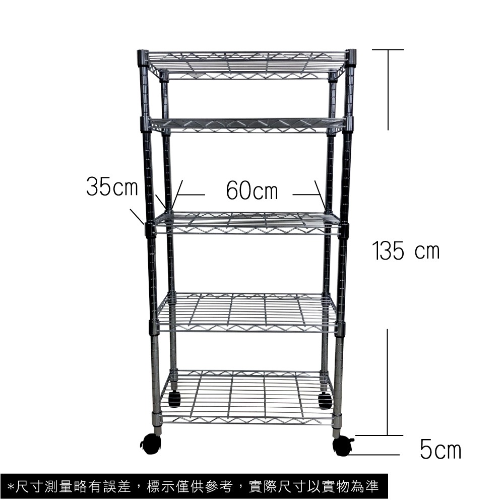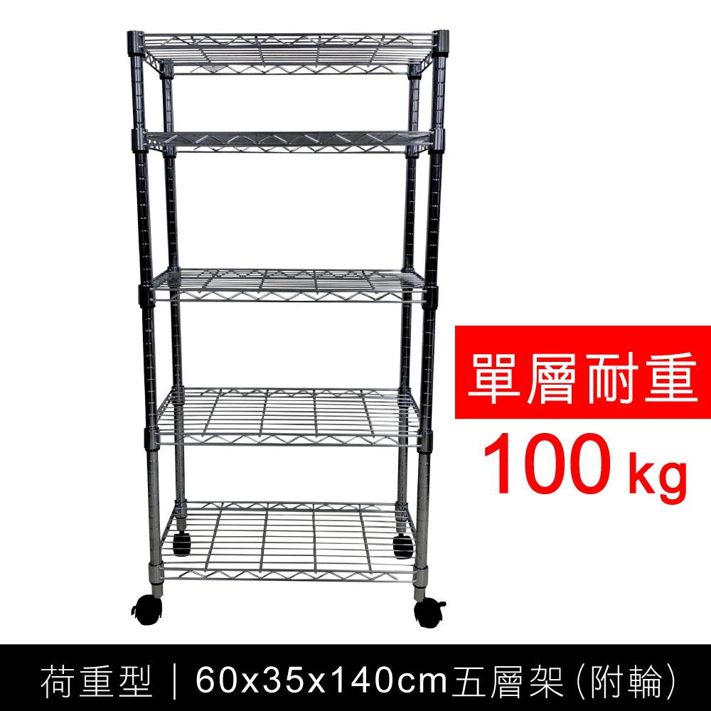【我塑我形】60x35x140cm 鐵力士五層收納架+輪 台灣製 單層耐重100kg 移動式鍍鉻層架