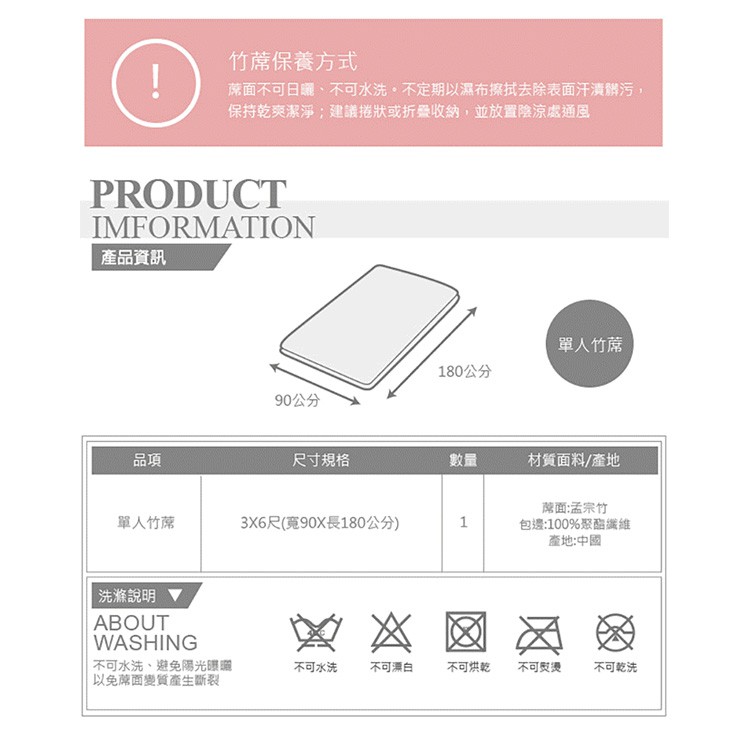 涼蓆;單人3X6尺;刮青涼爽竹蓆;LAMINA