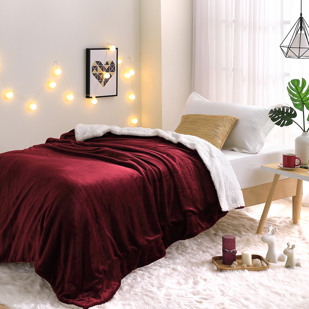 LAMINA 法蘭羊羔絨暖暖被_酒紅