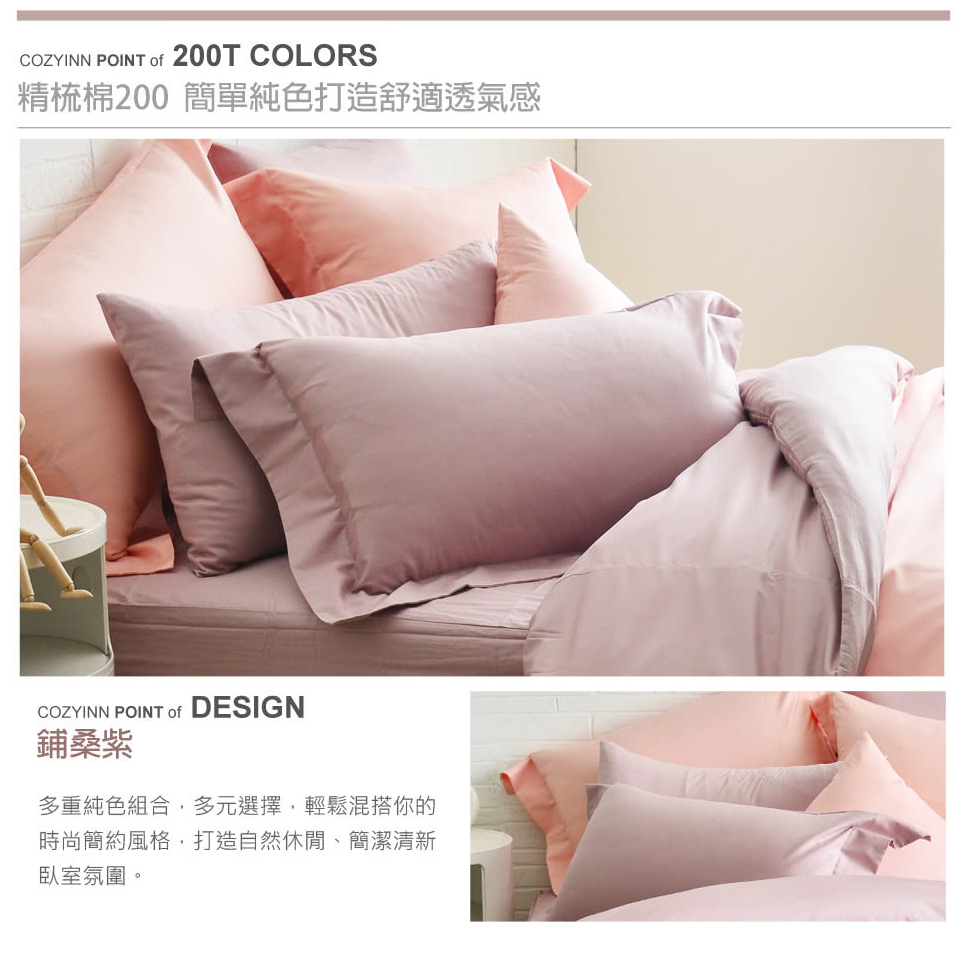 Cozy inn 簡單純色-鋪桑紫-200織精梳棉枕頭套-2入