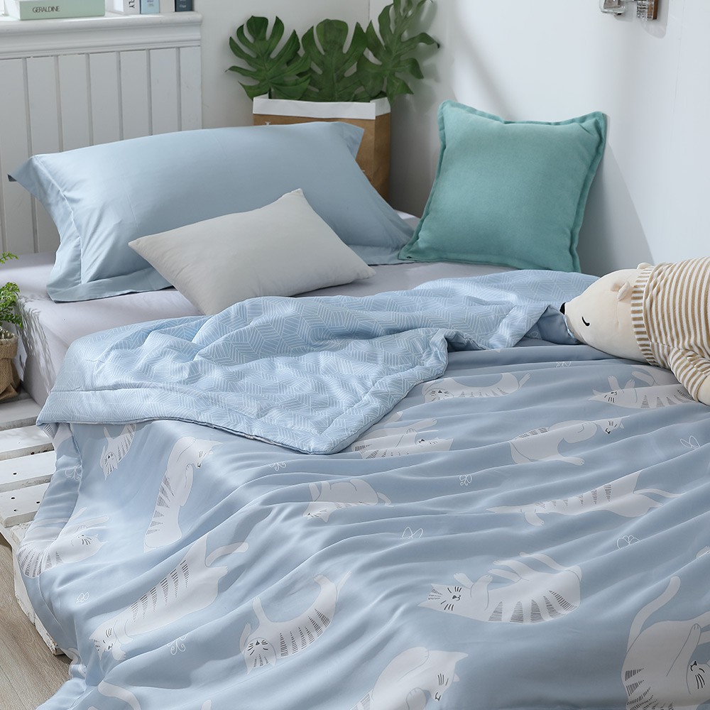 LAMINA 天絲涼被5X6.5尺-慵懶貓咪-藍