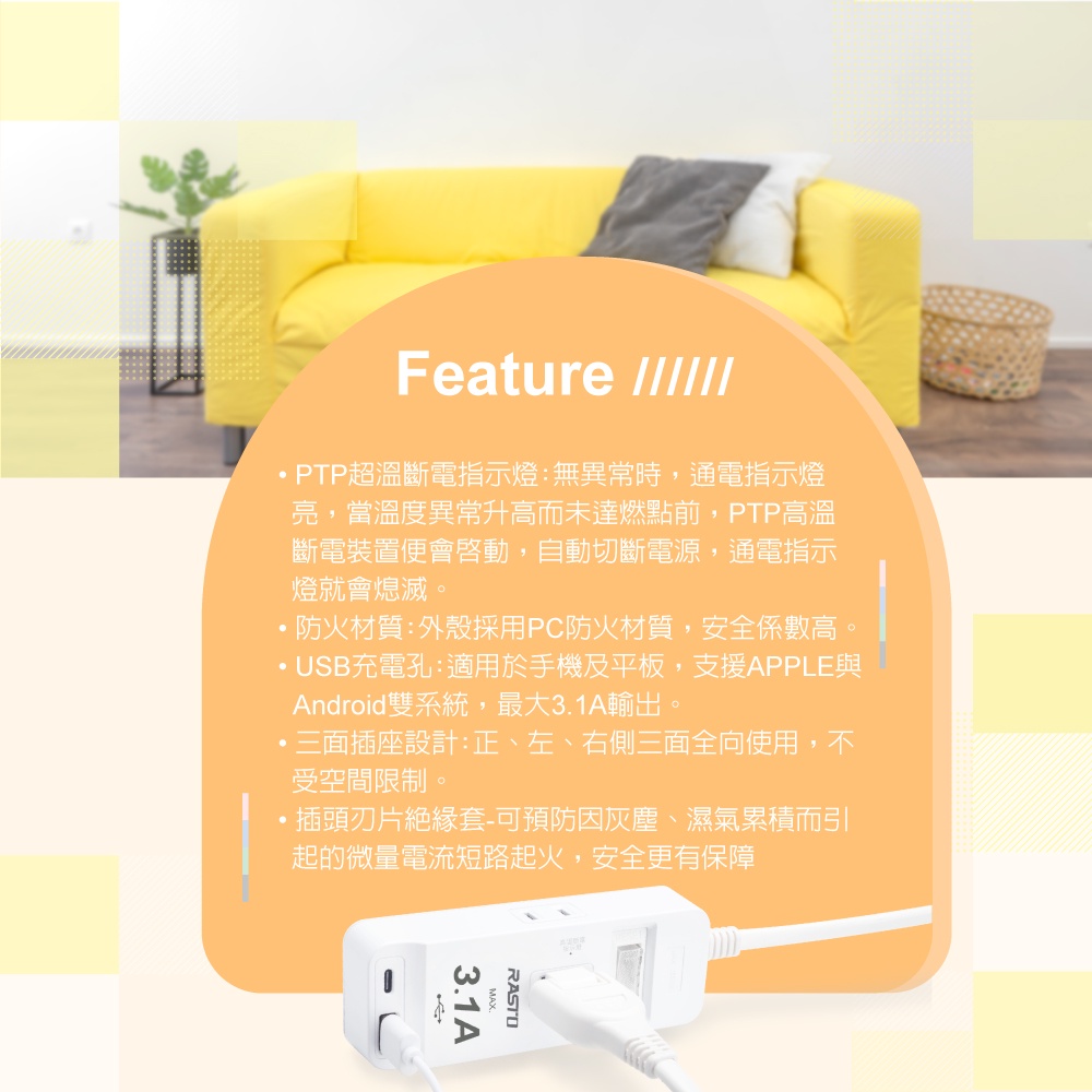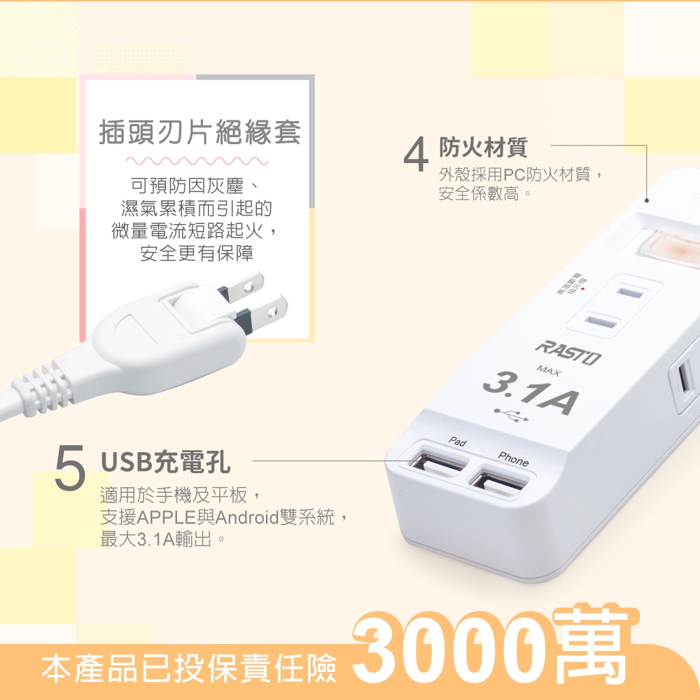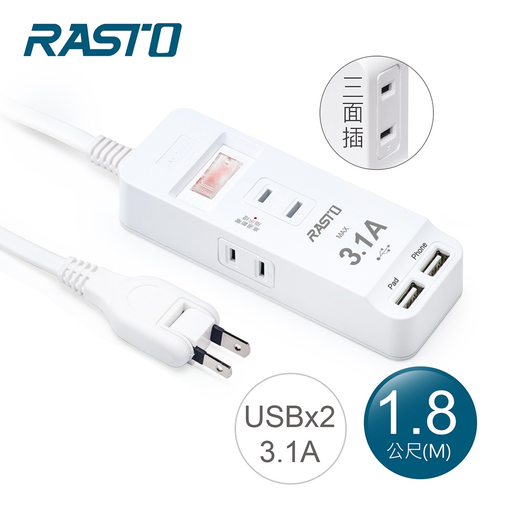 RASTO FE10 一開三插二埠USB延長線 1.8M