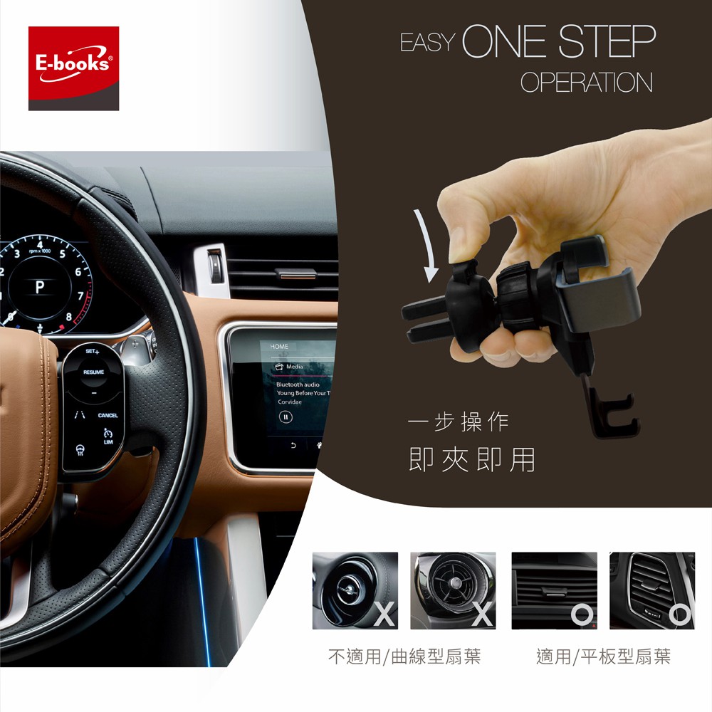 E-books N58 盾型重力聯動冷氣孔手機車架