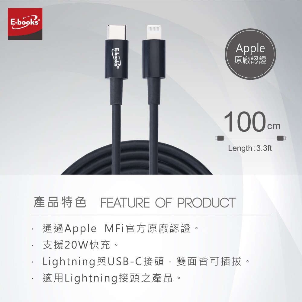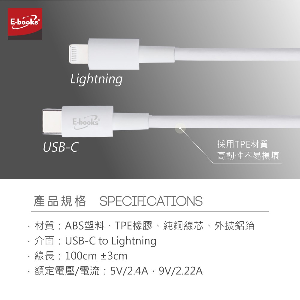 E-books X83 蘋果MFi 認證Type C to Lightning快充傳輸線1M