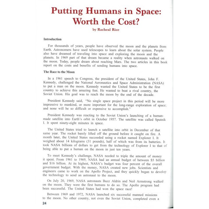 悅讀連結B:送人類上太空:划得來嗎? Putting Humans in Space: Worth the Cost?