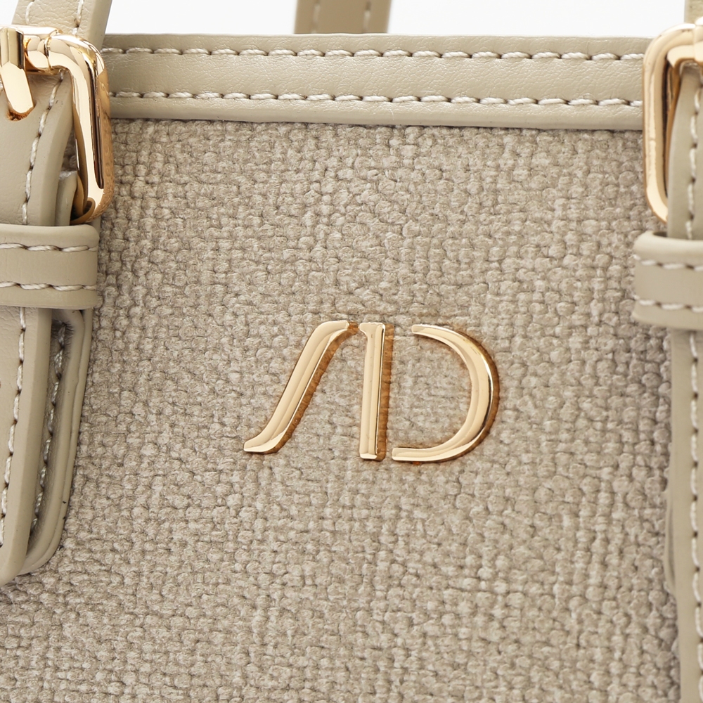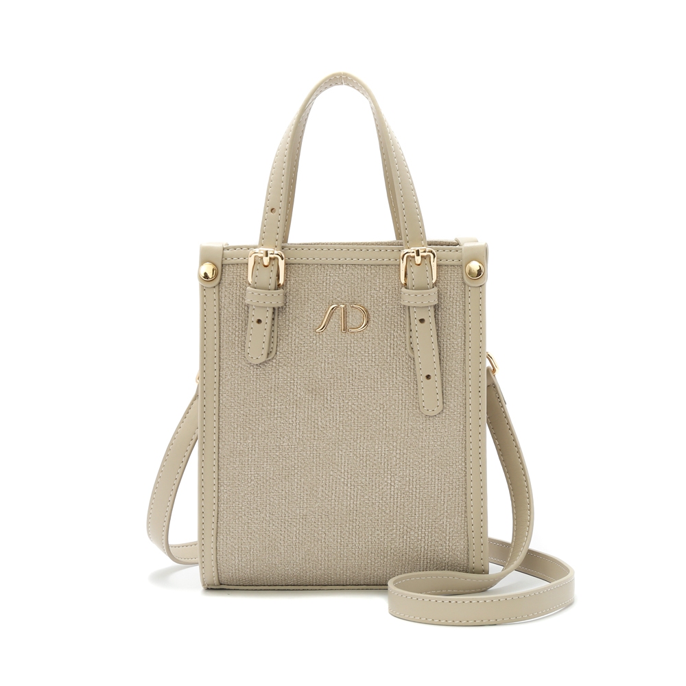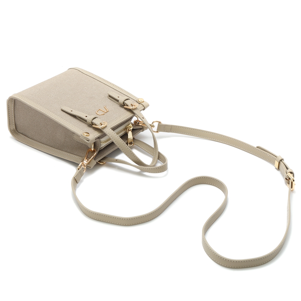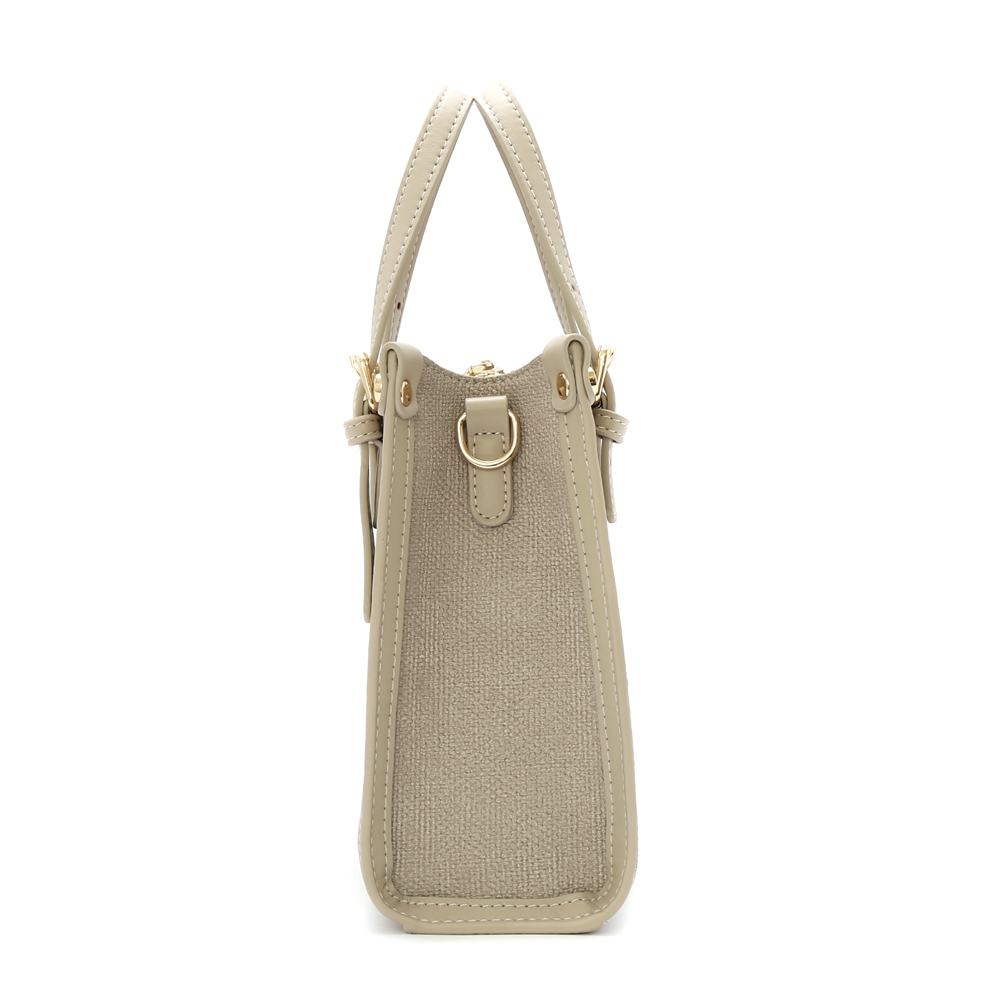 ANNA DOLLY 法系滾邊撞色3WAY手提包-小 淺灰