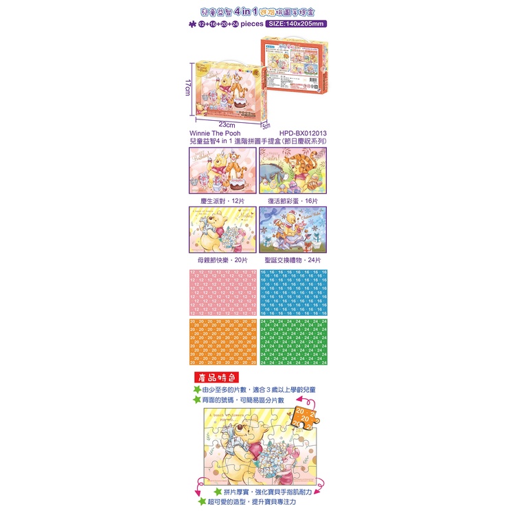 Winnie The Pooh兒童益智4 in 1 進階拼圖手提盒(節日慶祝系列)