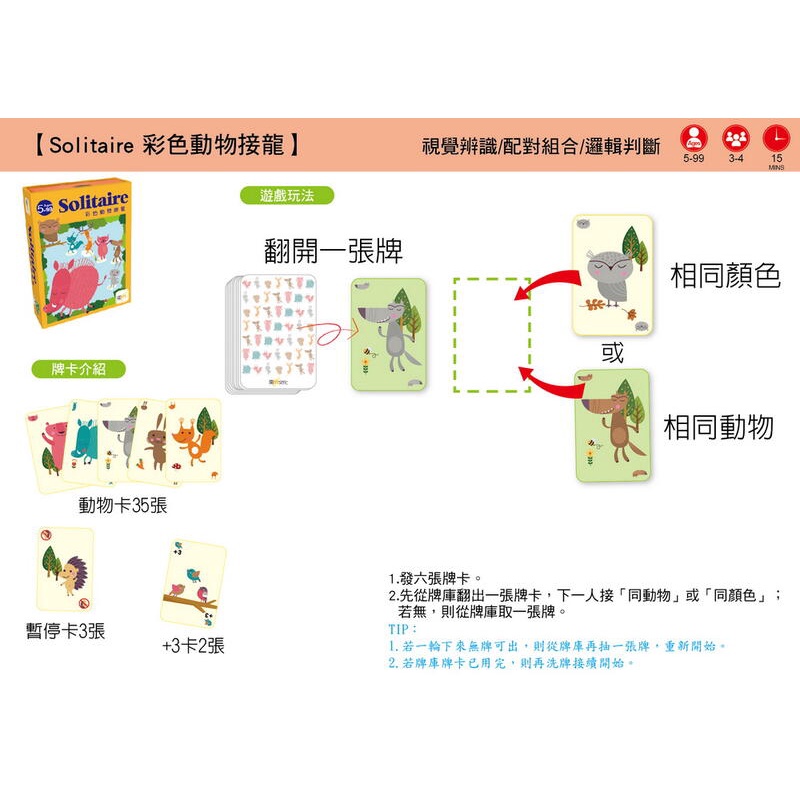 彩色動物接龍 Solitaire 繁體中文版 5歲以上 高雄龐奇桌遊