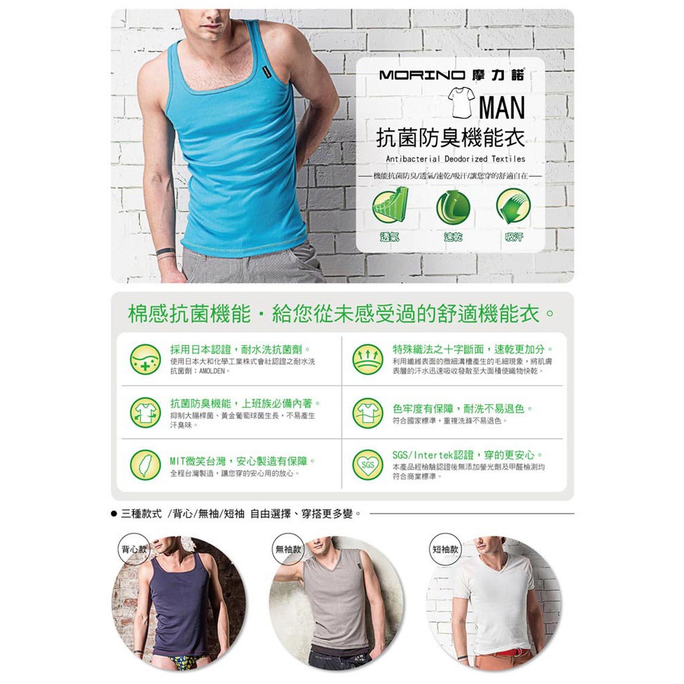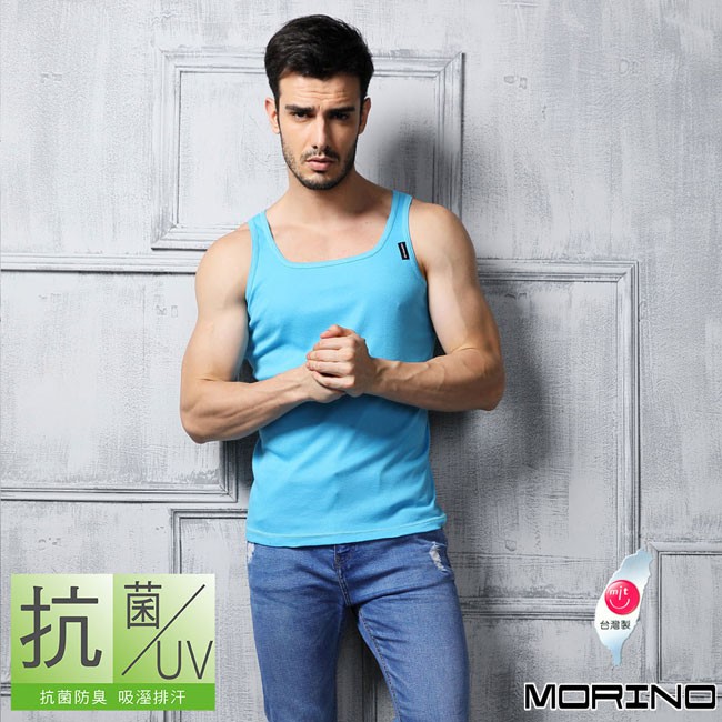 【MORINO】抗菌防臭速乾背心_水藍 MO5107 男背心 男內衣 快速吸濕排汗 抗菌防臭、透氣排汗