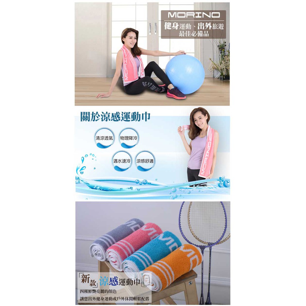 【MORINO】(2條組)涼感COOL運動長巾_22*112cm MO550