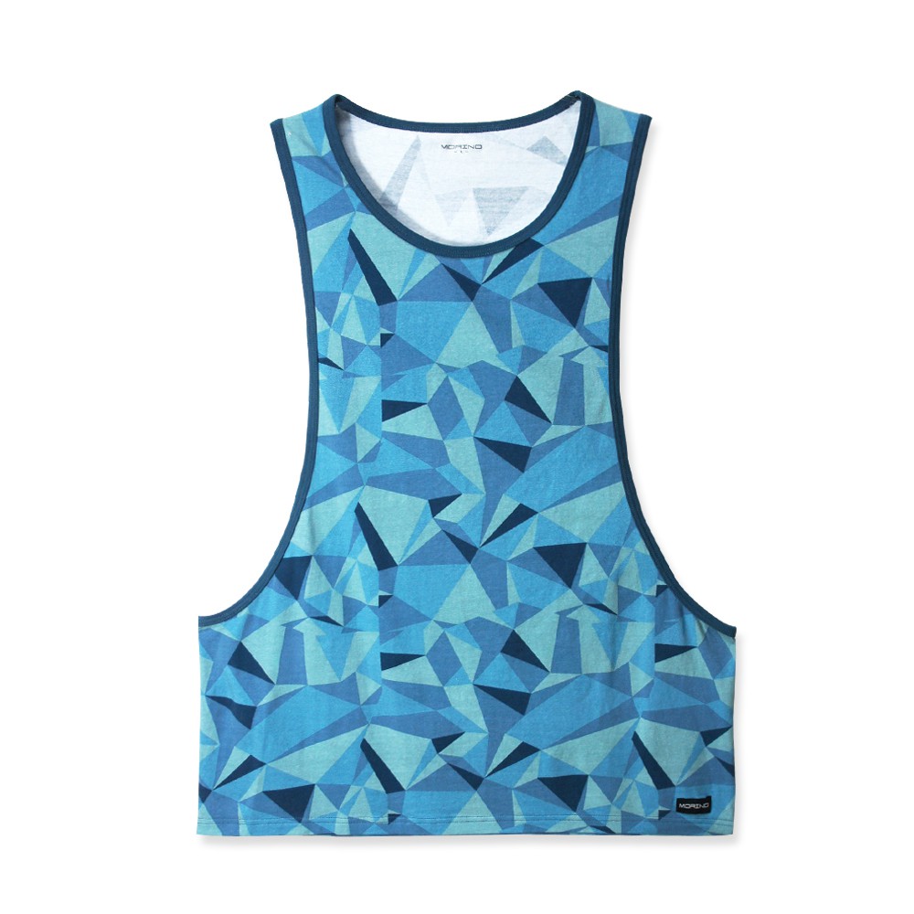 【MORINO】幾何迷彩時尚健身開衩背心_藍色 MO5111 型男潮男 健身 質感設計 引領風潮 LUCAS聯名款
