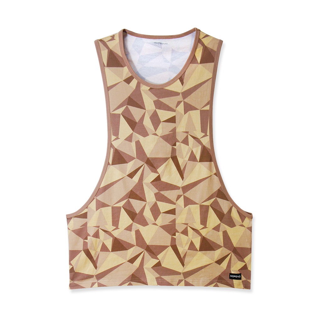 【MORINO】幾何迷彩時尚健身開衩背心_棕色 MO5111 型男潮男 健身 質感設計 引領風潮 LUCAS聯名款
