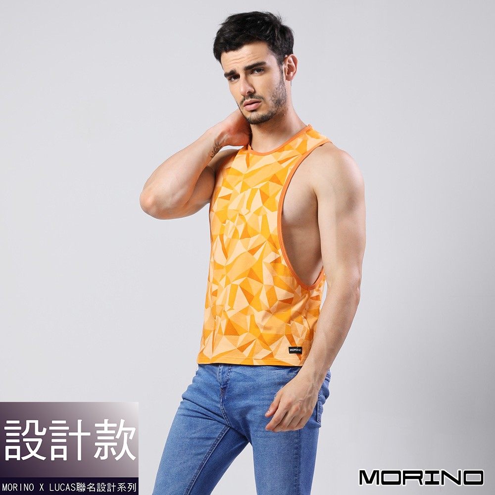 【MORINO】幾何迷彩時尚健身開衩背心_橘色 MO5111型男潮男 健身 男背心 質感設計 引領風潮 LUCAS聯名款