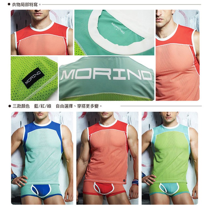 【MORINO】速乾涼爽運動背心_綠色 MO5108 型男 潮男 健身 男背心 色彩鮮明,展現年輕氣息 LUCAS聯名款
