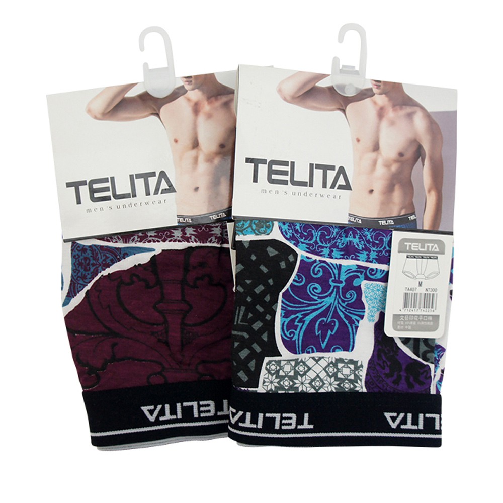 【TELITA】(3件組)嫘縈文藝圖騰印平口褲/四角褲 TA407 男內褲 光滑質感、舒適涼爽 展現男性獨特魅力