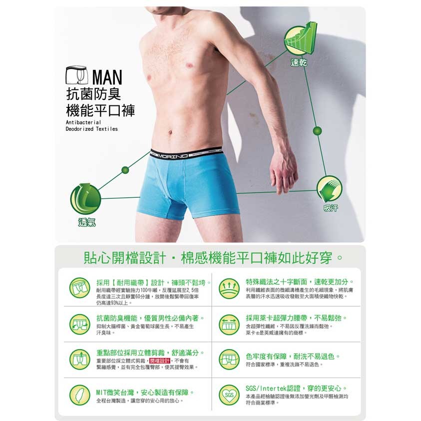 【MORINO】(5件組)抗菌防臭速乾平口褲/四角褲(開檔) MO2401 男內褲 開檔設計 立體囊袋 快速吸濕排汗
