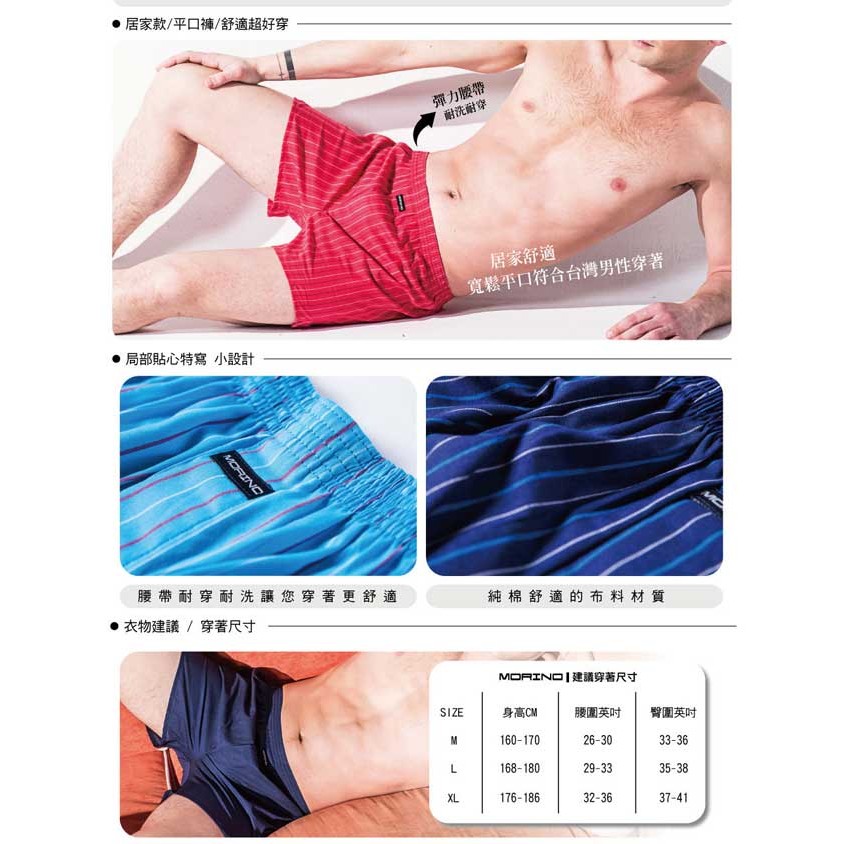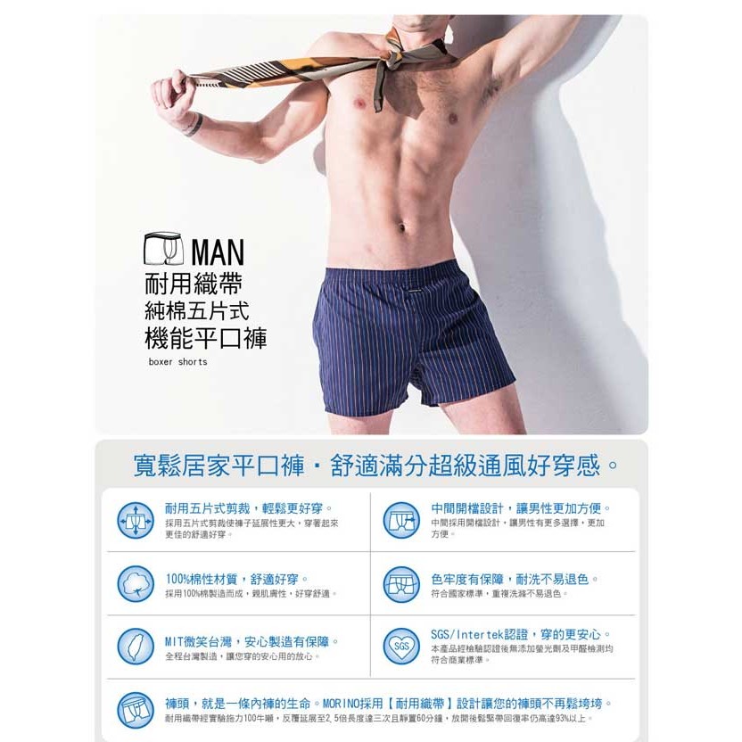 【MORINO】(5件組)純棉耐用平口褲/四角褲 MO2404 男內褲 立體囊袋 開檔設計 快速吸濕排汗 速乾防臭
