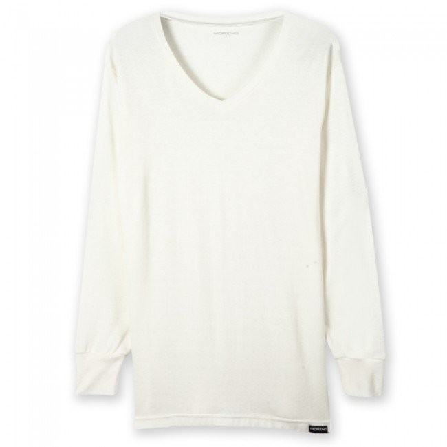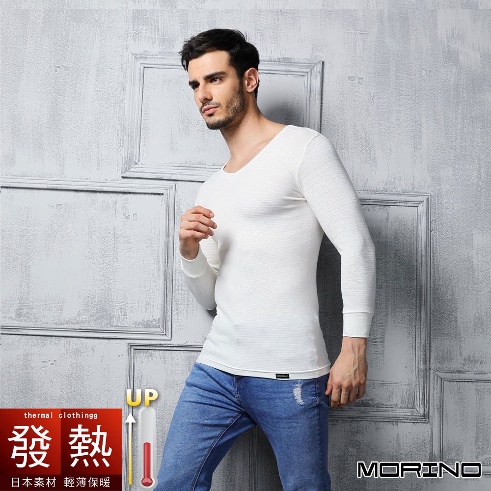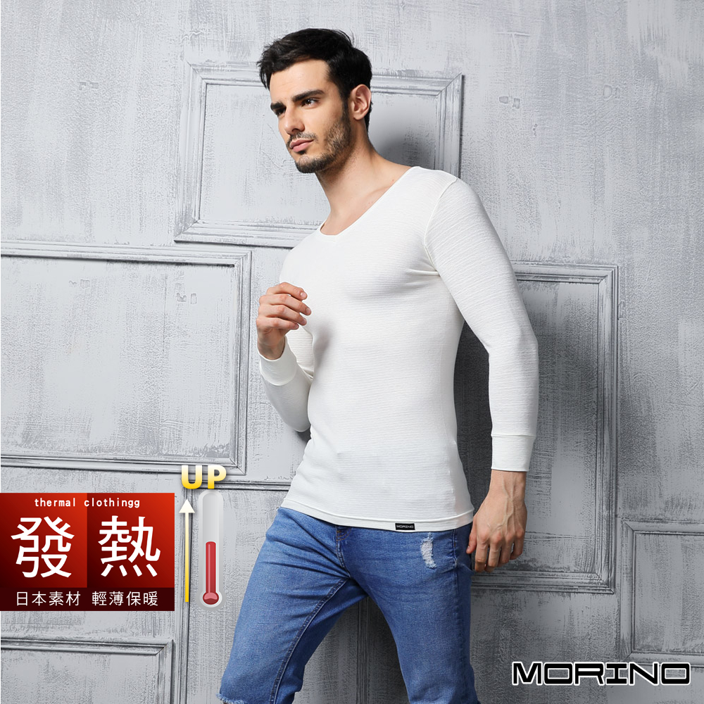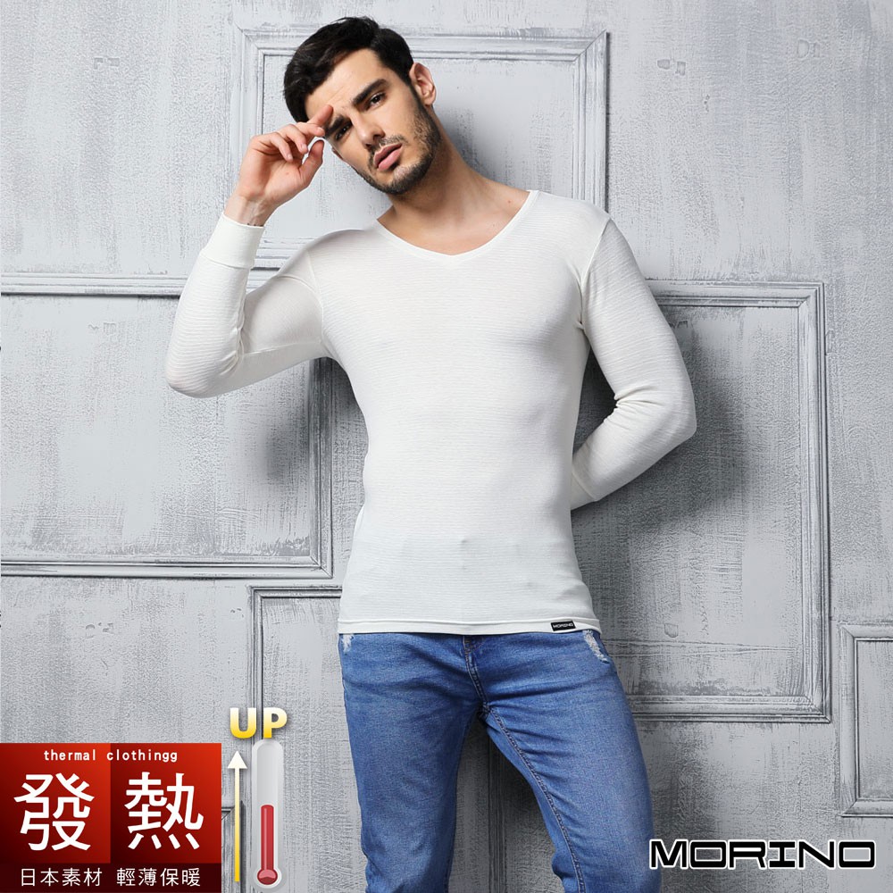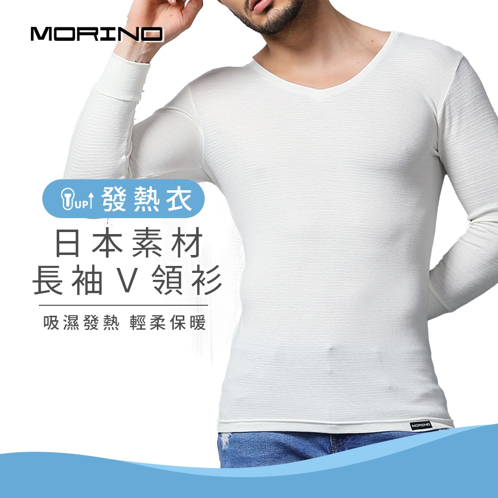 【MORINO】日本素材長袖發熱衣V領衫_白色 MO5508 男內搭衣