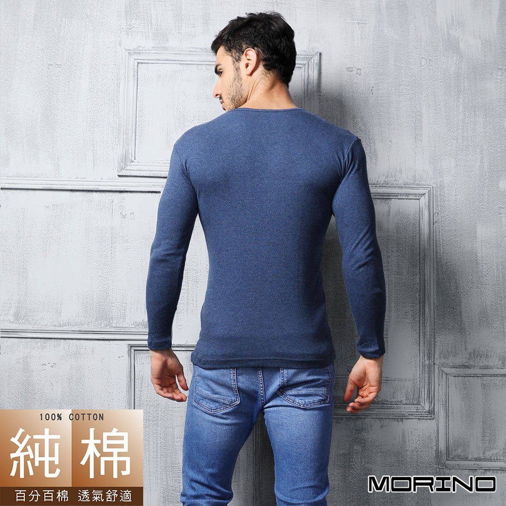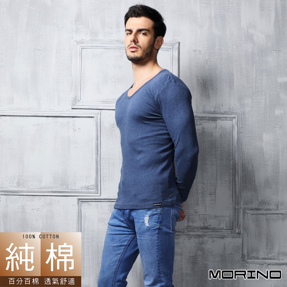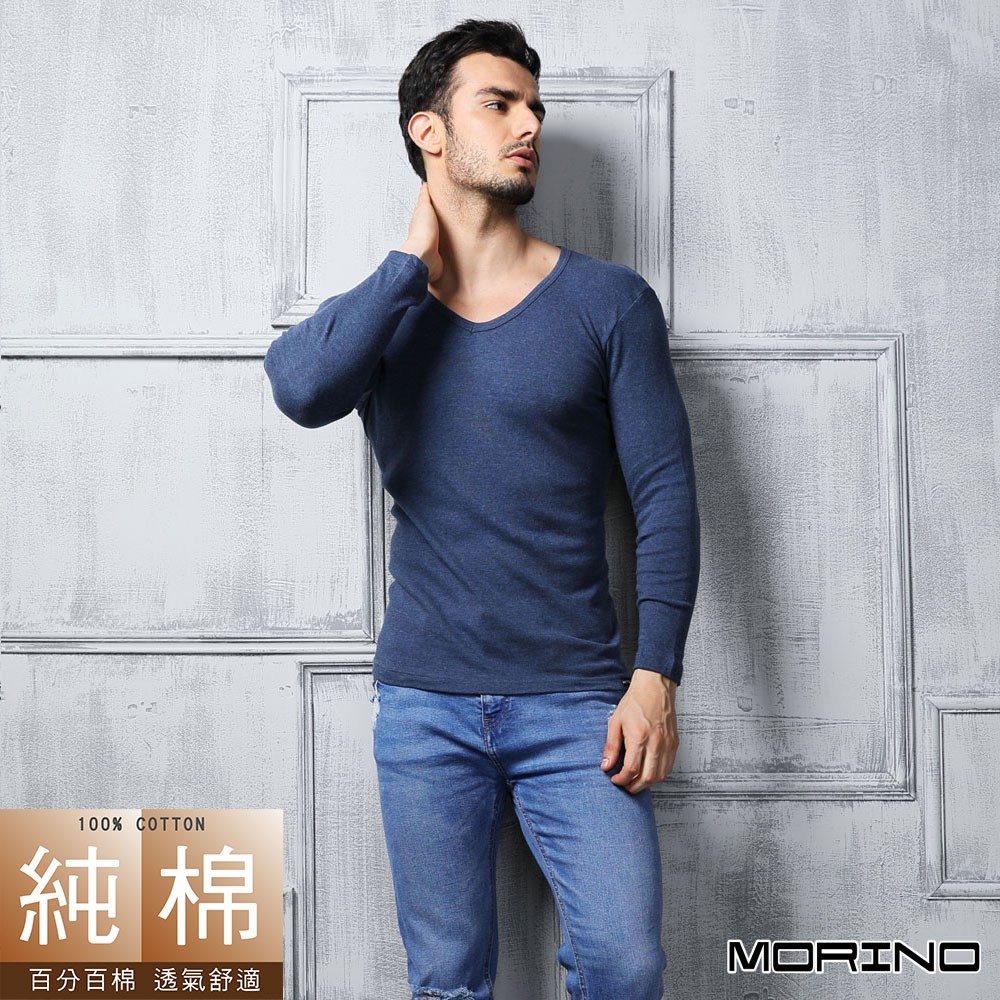 【MORINO】純棉長袖休閒V領衫_深藍 MO5511 男內衣 男款 極不易縮水變形,耐穿好洗