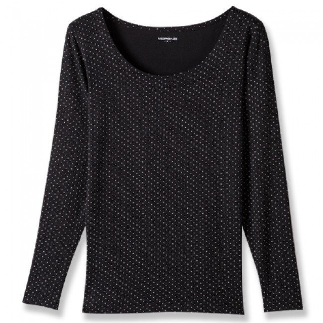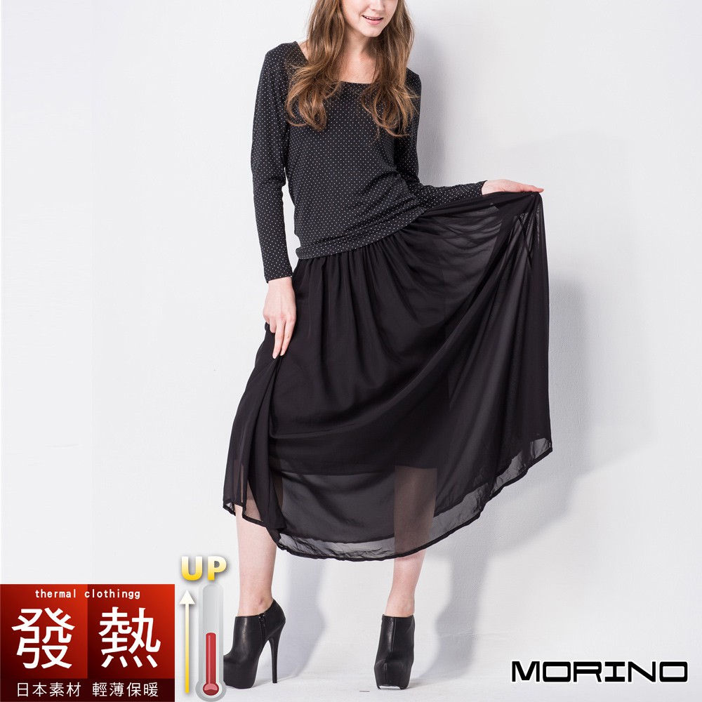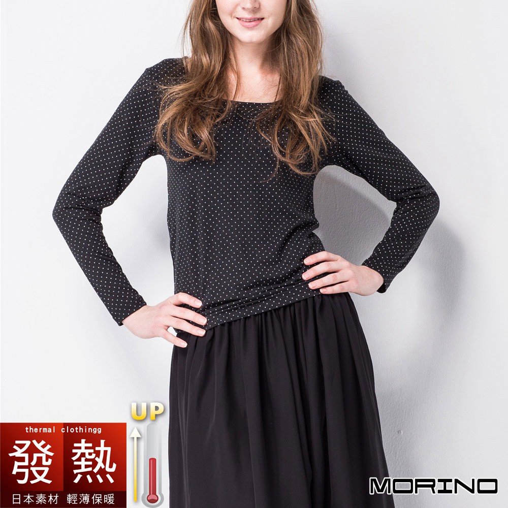 【MORINO】日本素材發熱長袖圓點U領衫_神秘黑 MO4220 女內搭衣 女款