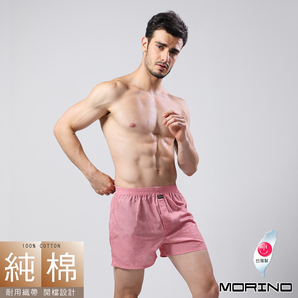 【MORINO】純棉耐用織帶素色平口褲/四角褲_紅色 MO2403 男內褲 前方開擋 耐用織帶 舒適透氣