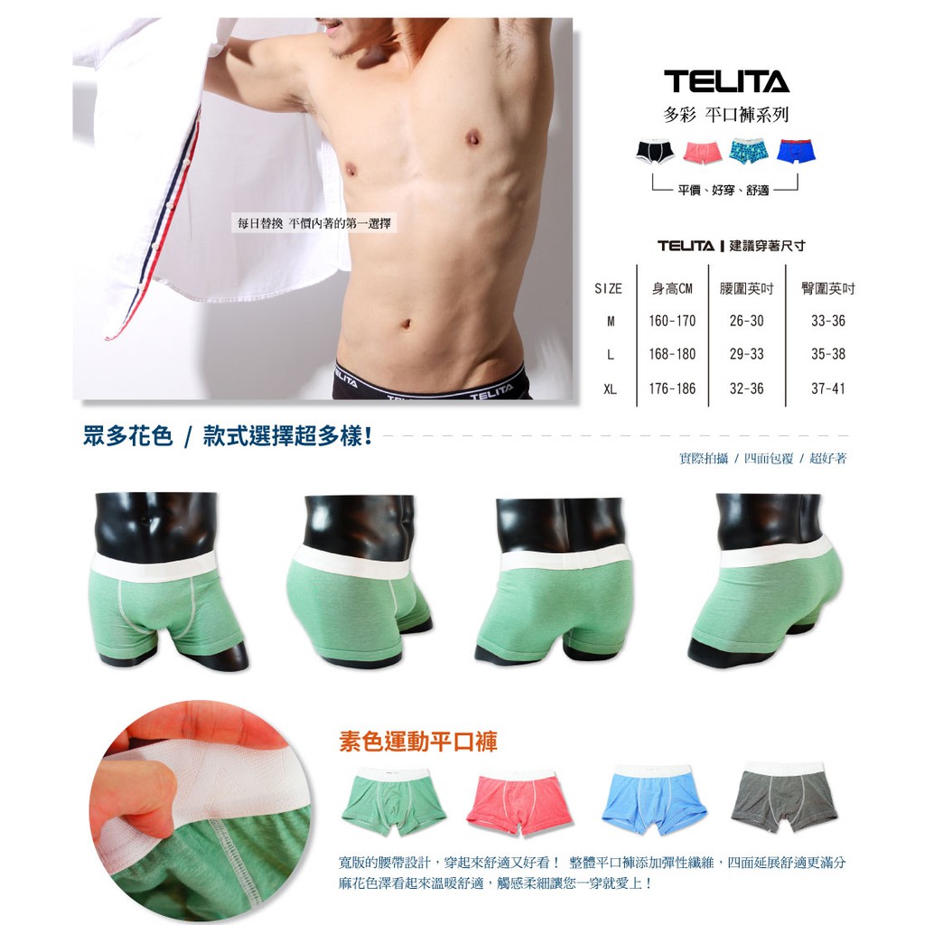 【TELITA】亞麻色系運動平口褲/四角褲_黑色 TA411 男內褲 簡約素色 棉質材料 彈性佳 舒適柔細 寬版腰帶設計