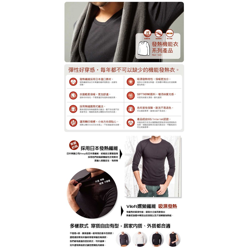 【MORINO】(4件組)日本素材長袖發熱衣_圓領衫 MO5507 男內搭衣