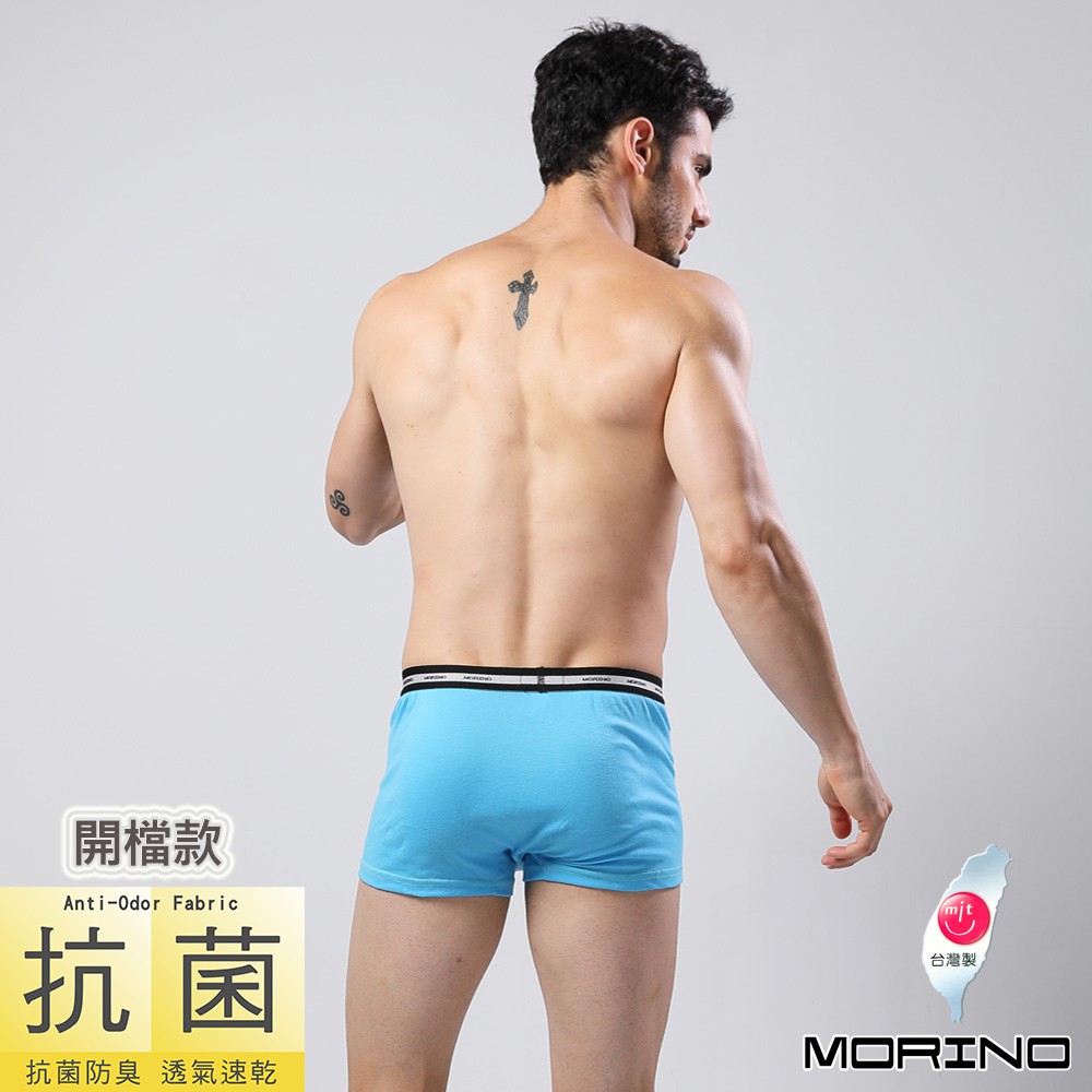 【MORINO】抗菌防臭速乾平口褲/四角褲(開檔)_水藍 MO2401 男內褲 開檔設計 立體囊袋 吸濕排汗 多色可選