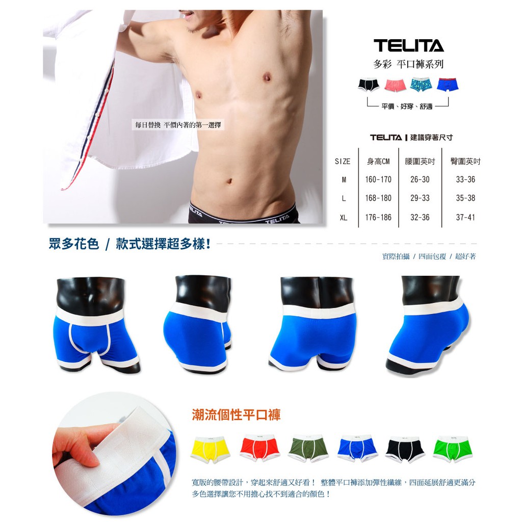 【TELITA】潮流個性平口褲/四角褲_青綠 TA413 男內褲 彈性貼身 多色選擇 立體剪裁 展現男性獨特魅力