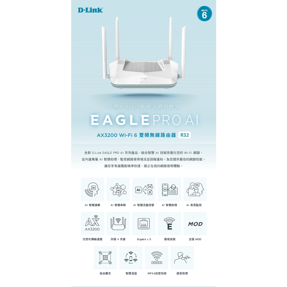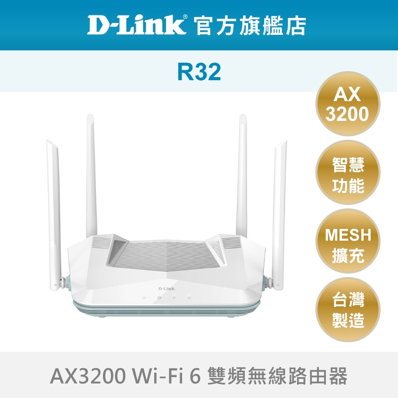 D-Link 友訊 R32 AX3200 Wi-Fi 6 雙頻 無線路由器 wifi分享器 (新品/福利品)