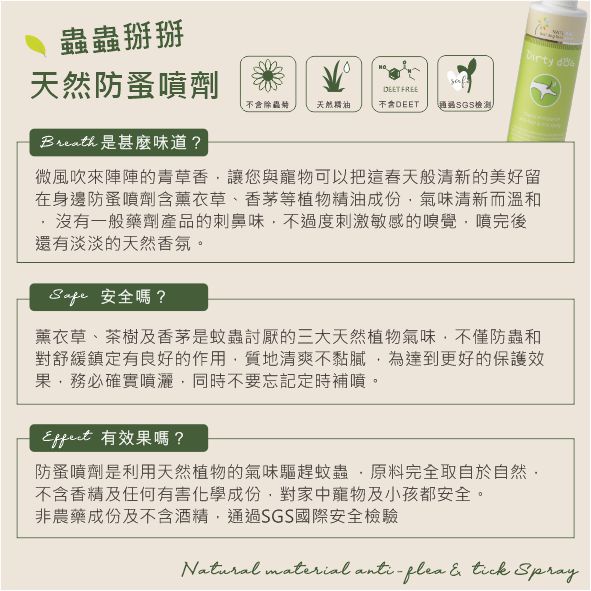 Pet'sTalk~Dirty Dog蟲蟲掰掰-天然防蚤驅蟲噴劑 40ML 隨身體驗瓶