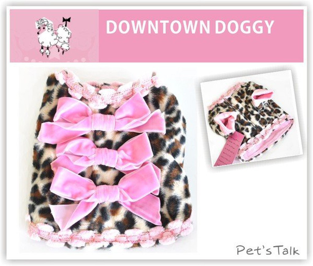 Pet's Talk~獨家推出 超美款澳洲設計品牌DOWNTOWN DOGGY絲絨質感蝴蝶結豹紋小外套