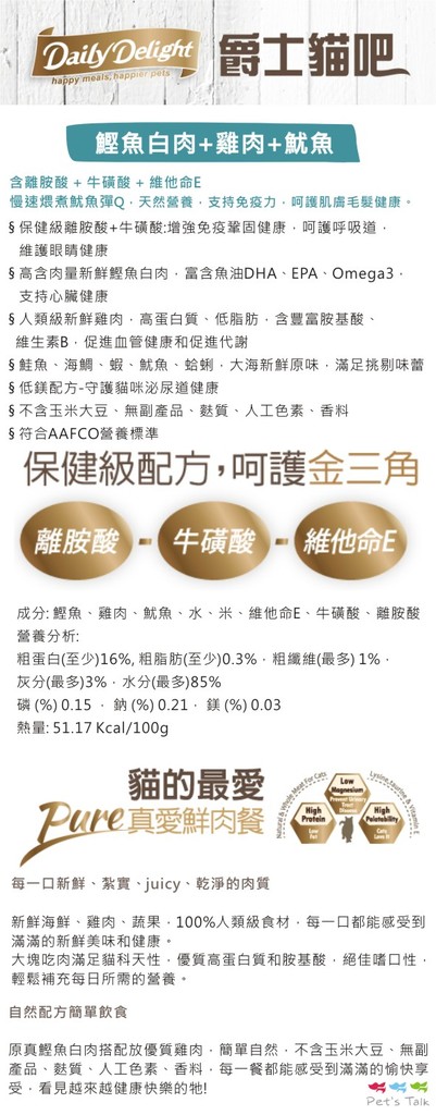 Daily Delight爵士貓吧 [真愛鮮肉餐-鰹魚白肉+雞肉+魷魚 -80g]