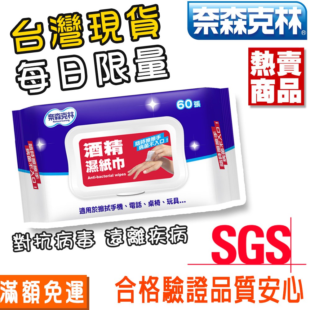 酒精濕紙巾優惠 奈森克林 台灣現貨 SGS認證 濕紙巾 酒精 清潔 隨身包 抗菌紙巾 60抽 掀蓋盒裝 媽媽必備