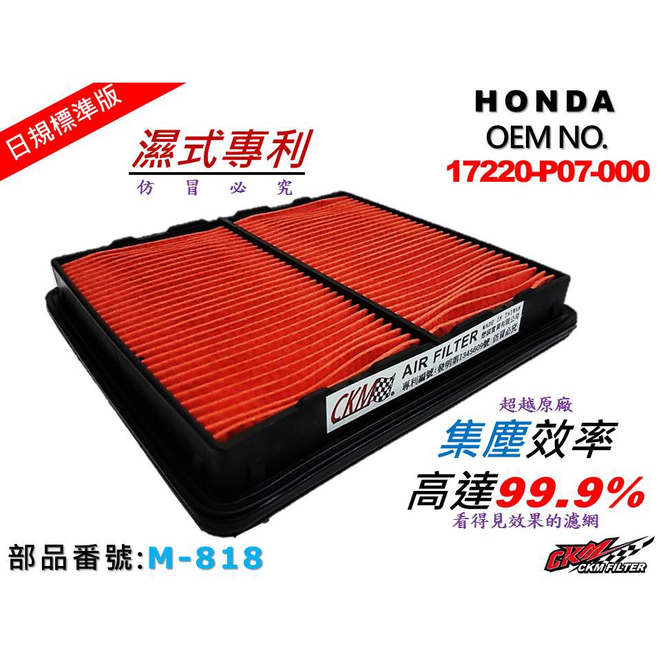 【CKM】油性濕式專利 本田 HONDA 喜美 五代 K6 空氣蕊 空氣芯 空氣濾網 引擎濾網 超越原廠正廠 非 高流量