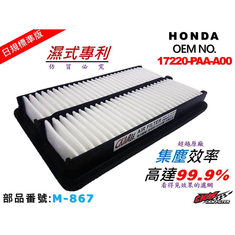 【CKM】本田 HONDA ACCORD 雅歌 K9 VP5 原廠 正廠 型 油性 濕式 空氣濾網 引擎濾網 空氣芯