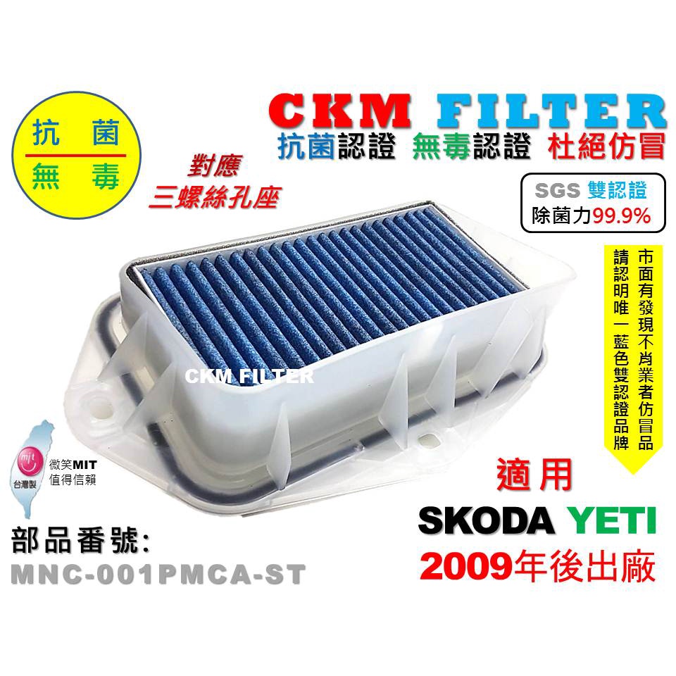 【CKM】SKODA YETI 三孔 除菌 抗菌 無毒 前置濾網總成 外置濾網總成 濾網支架 活性碳冷氣濾網 靜電濾網