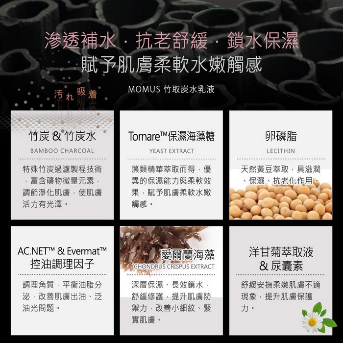 MOMUS 竹取炭水乳液-體驗瓶 (竹炭乳液)